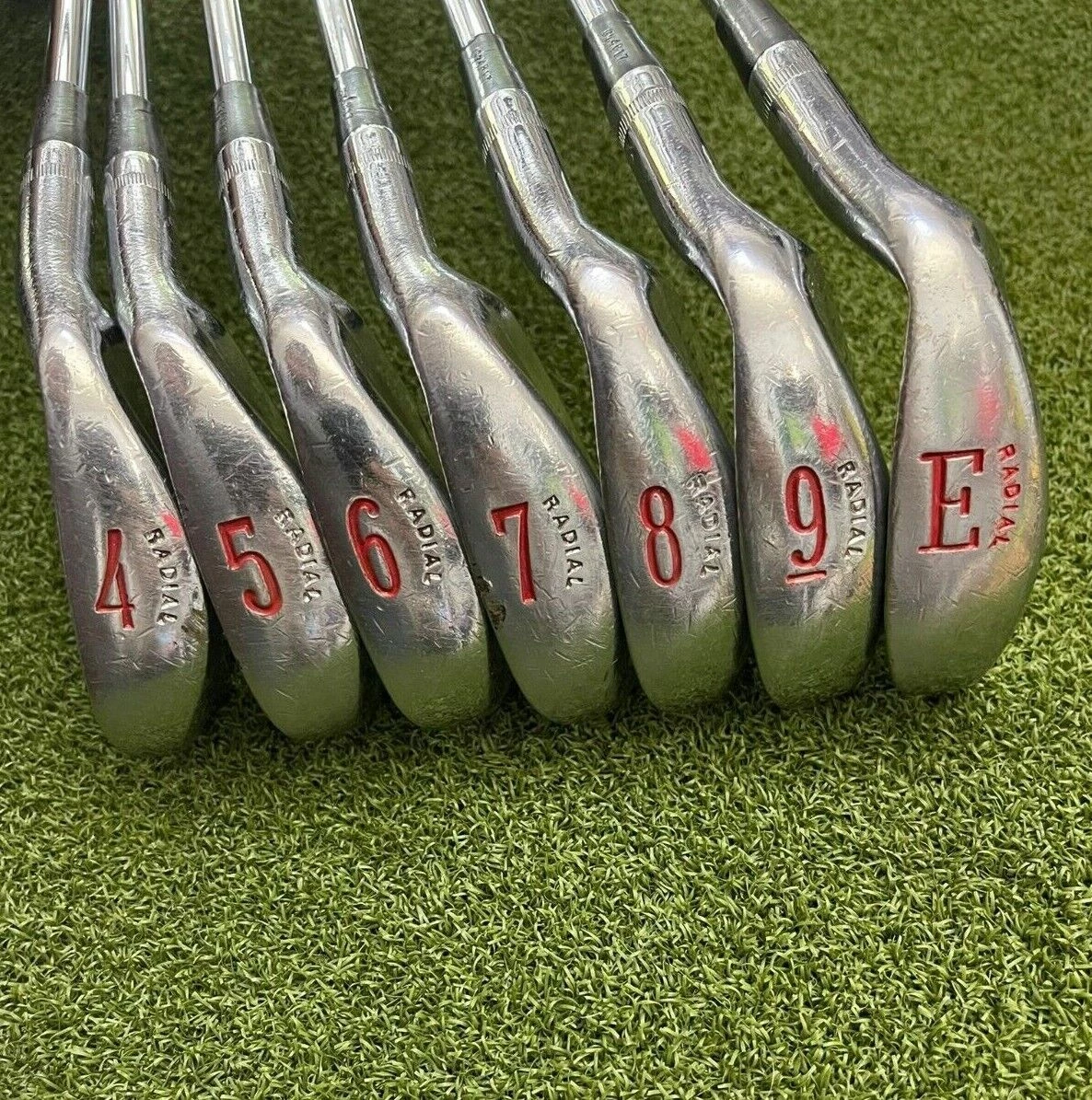 Irons.- Light scratches on the sole, minimal groove wear, and lightly visible ball marks on the face.
