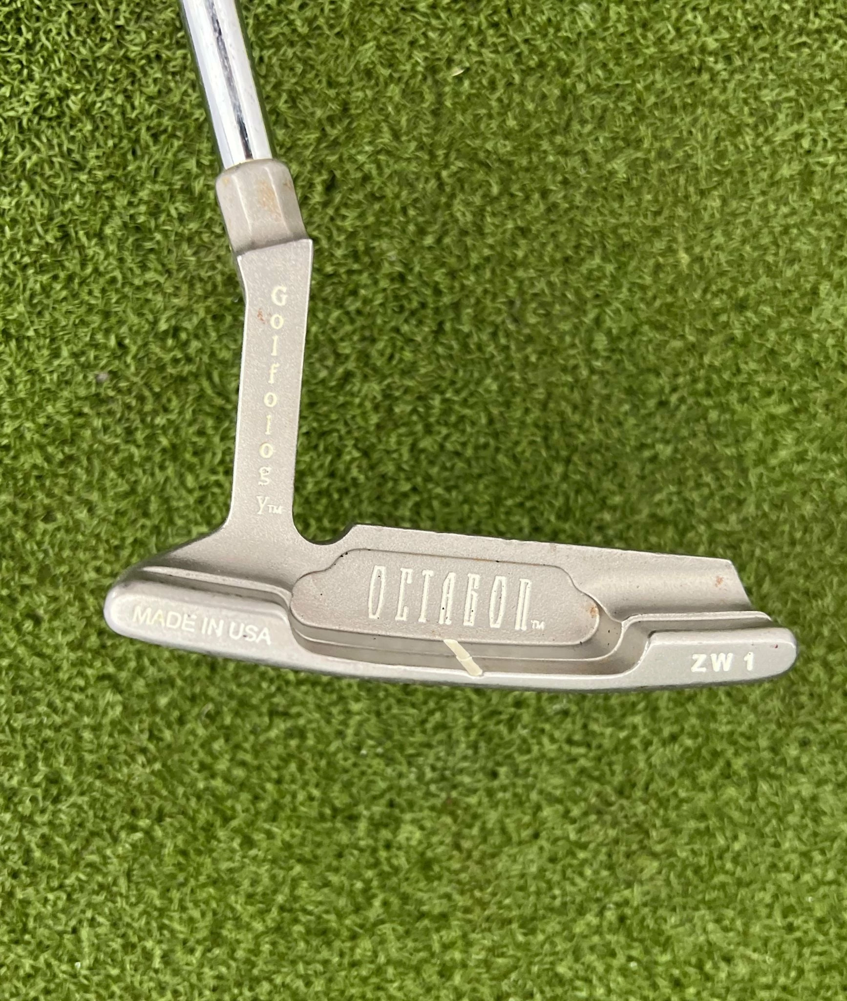 Hi, You Are Looking At a RARE Golfology Octagon ZW1 Putter, 35″, Right Handed, With a Golfology Octagon Steel Shaft And a Golfology Grip, In Very Good Condition!
