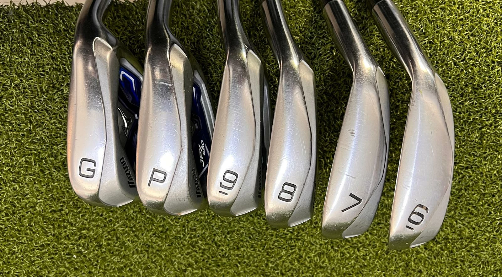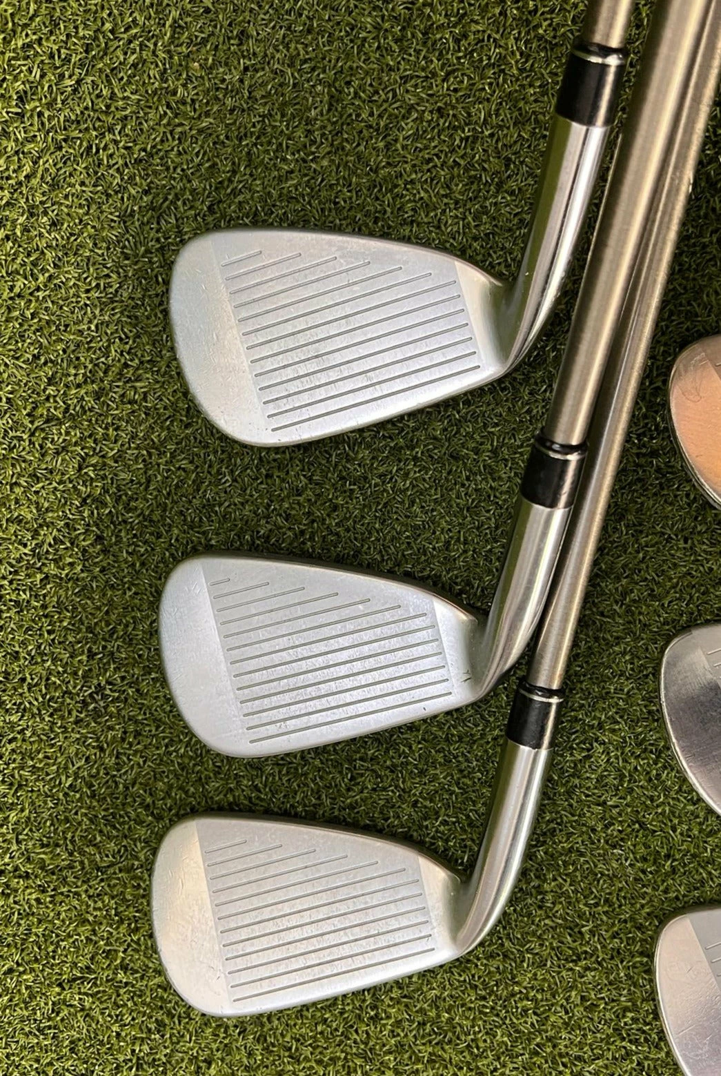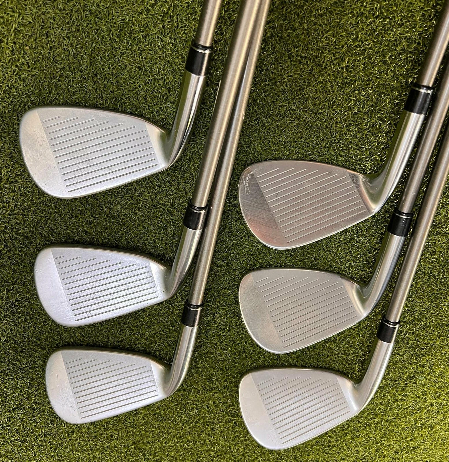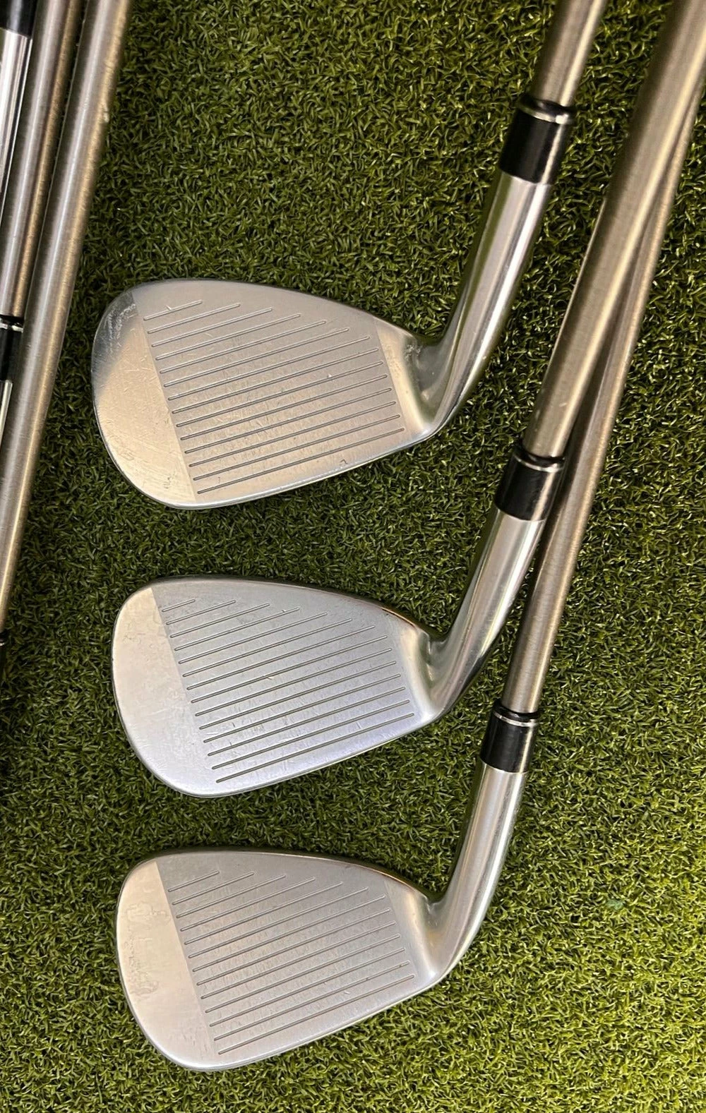 Irons.- Light scratches on the sole, minimal groove wear, and lightly visible ball marks on the face.