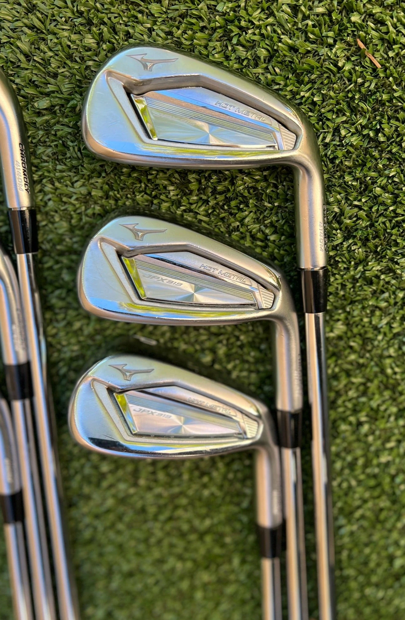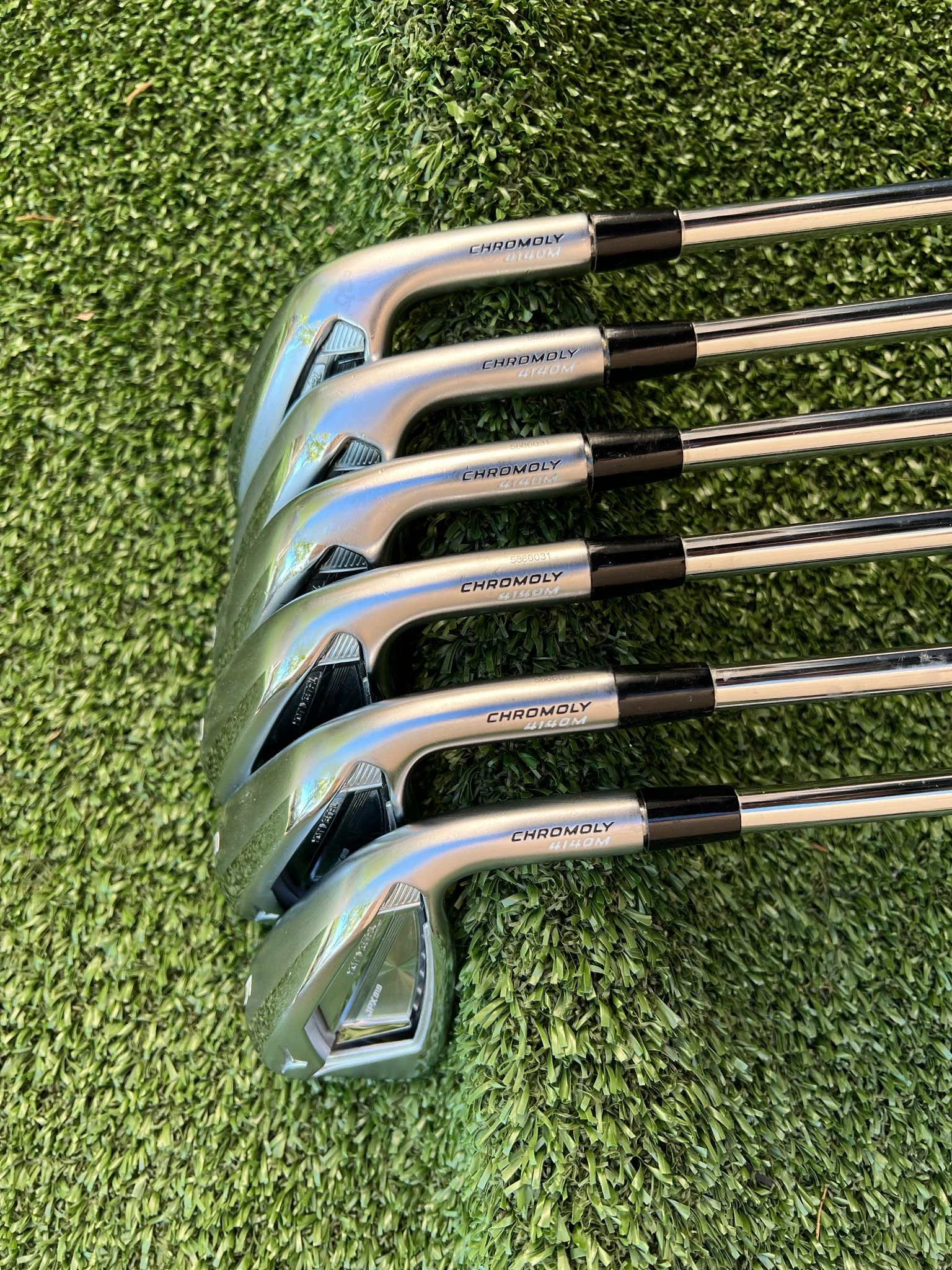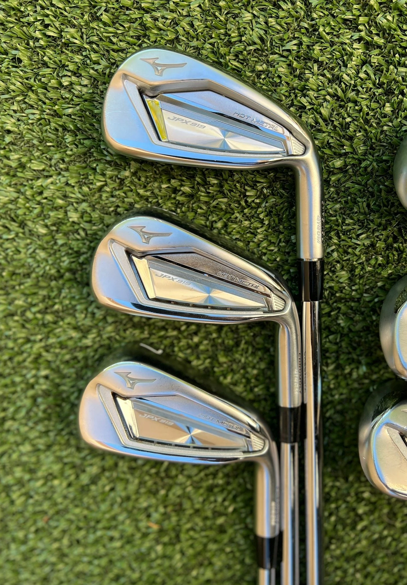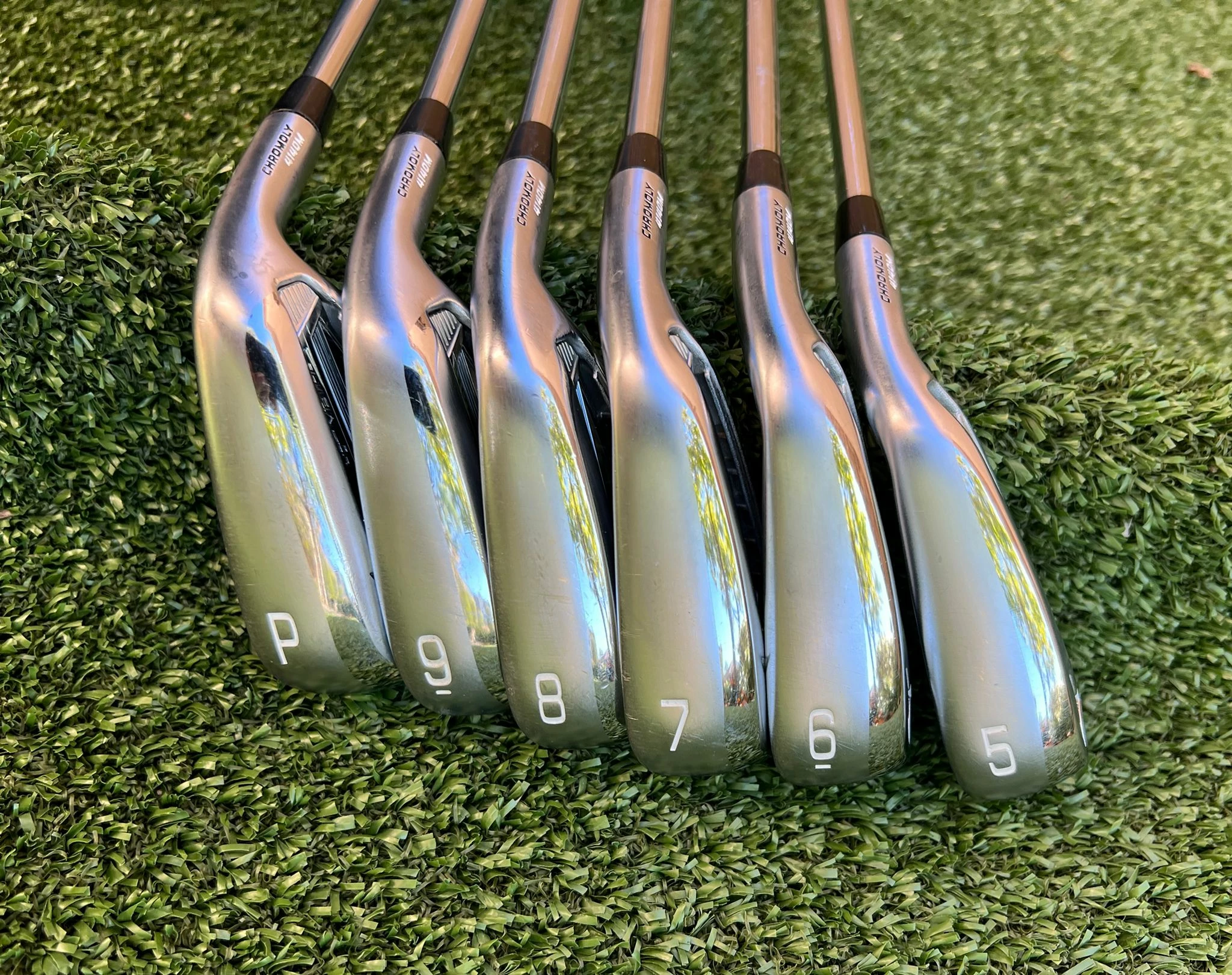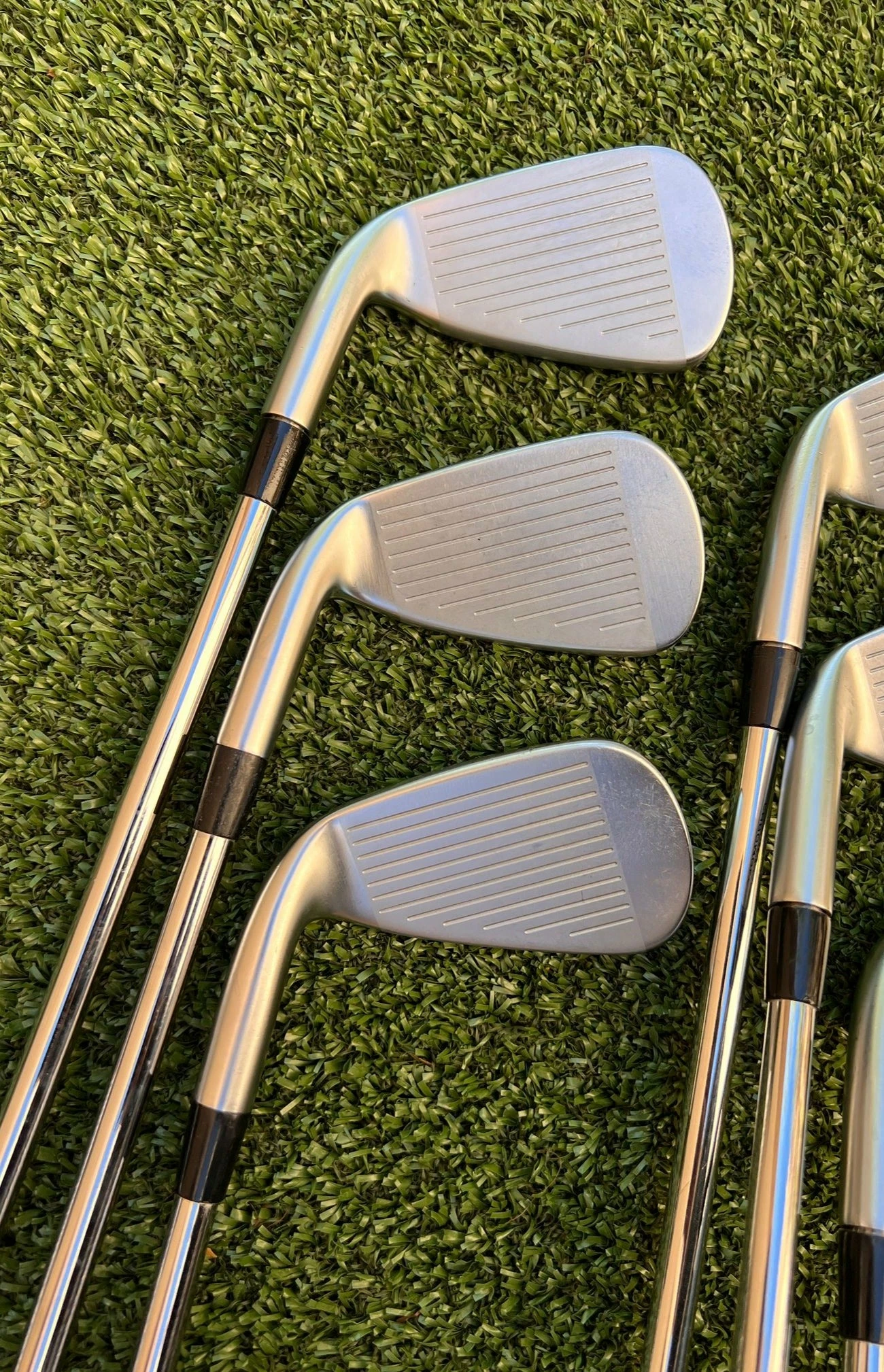 Irons.- Light scratches on the sole, minimal groove wear, and lightly visible ball marks on the face.