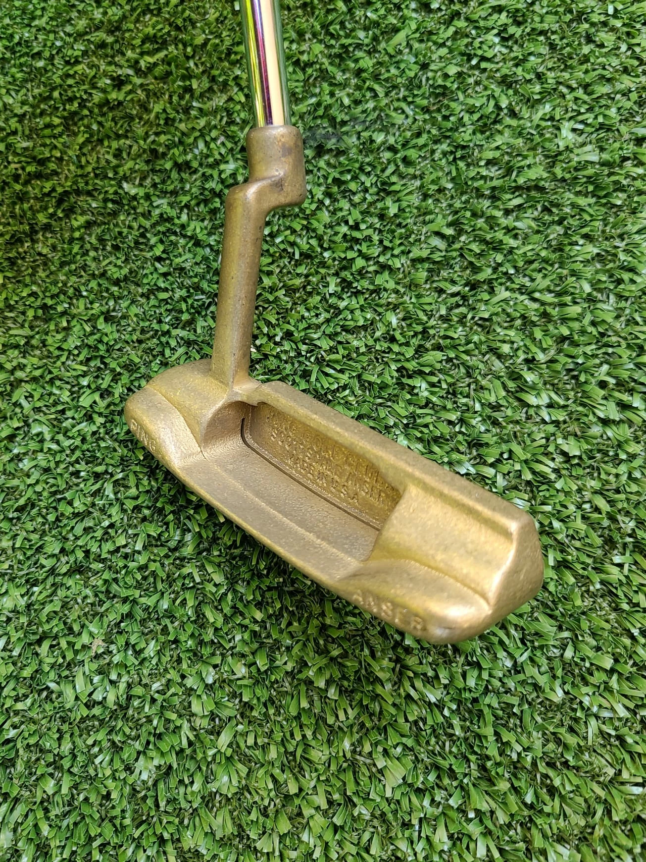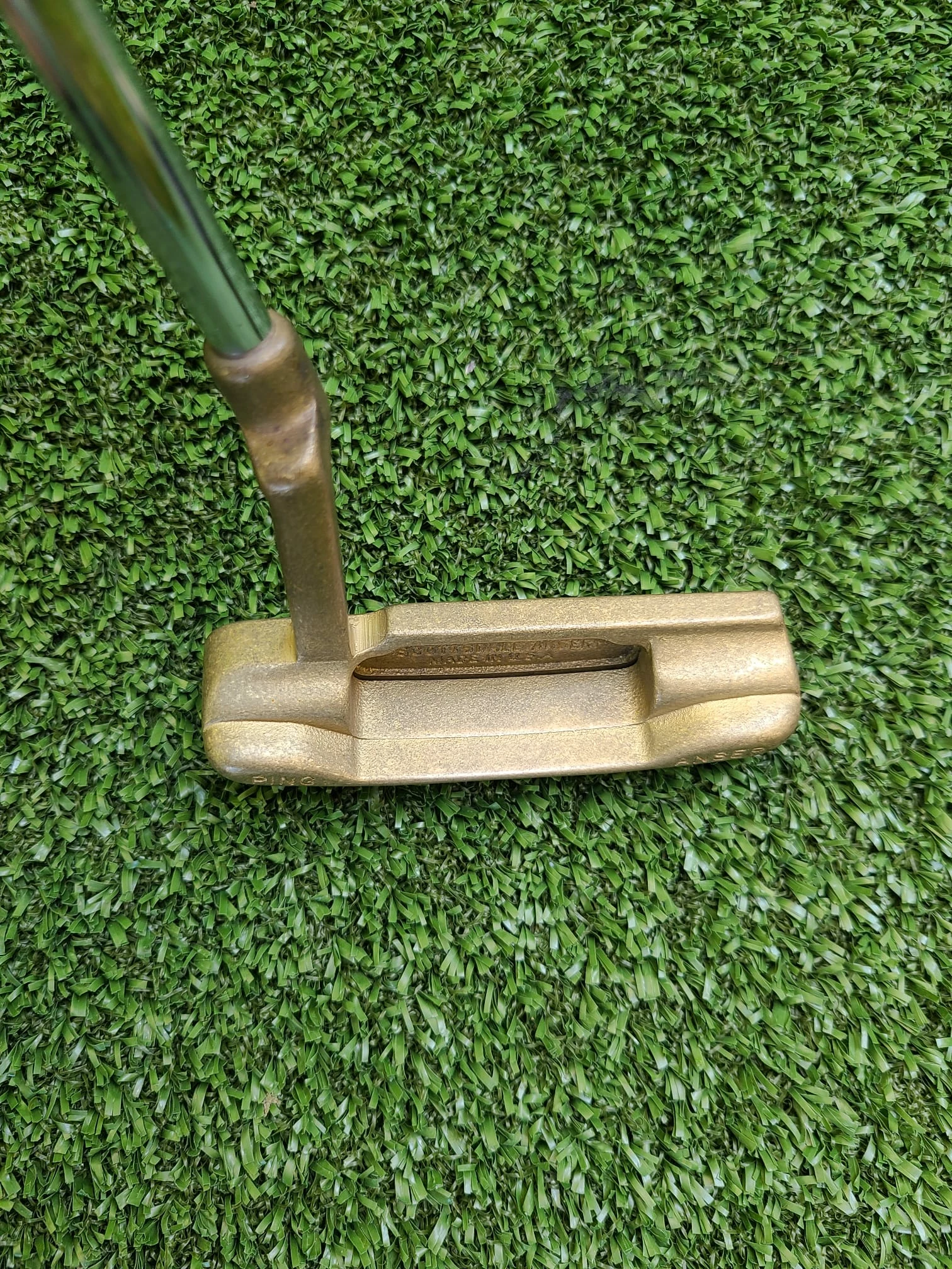 Www.chipnputt.com Ray Cook Nugget 2 Brass Putter, 35″, RH, Stock Shaft & Leather Grip-Vintage-Great!