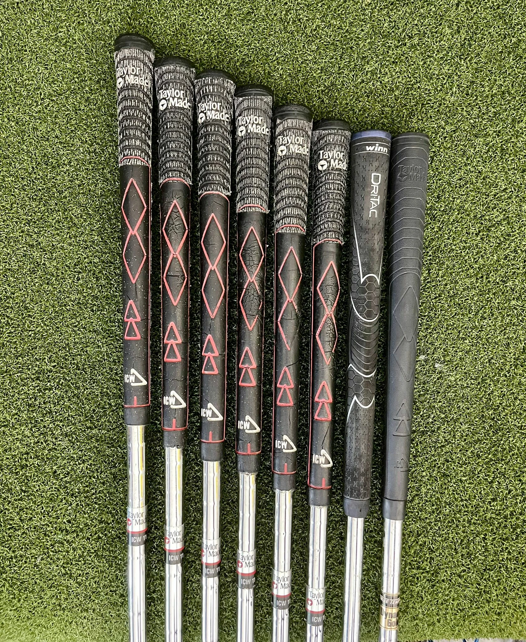 GRIPS:  TaylorMade ICW – AW With Winn Dri.Tac  (Fair Condition, Need To Be Replaced Soon)