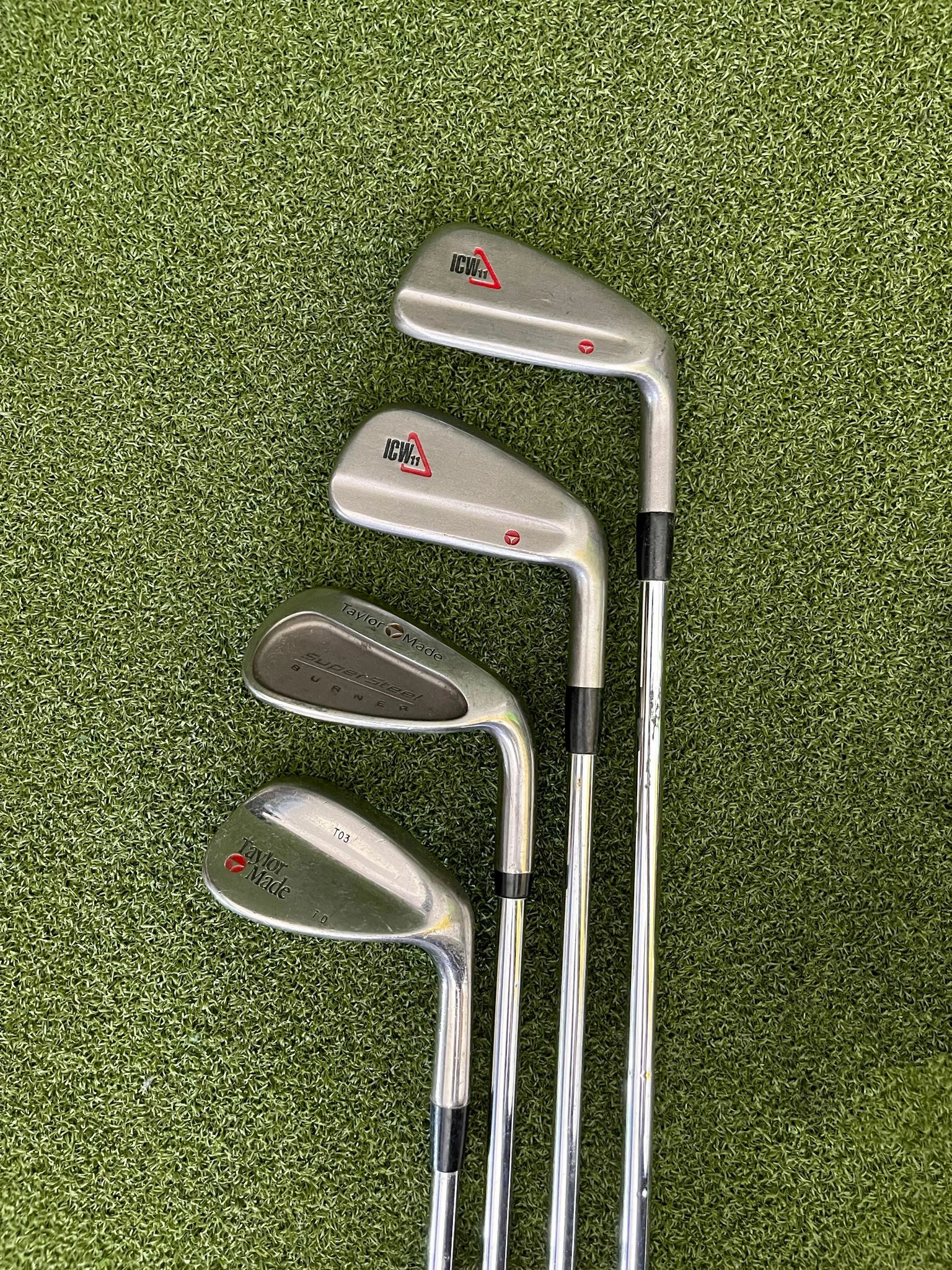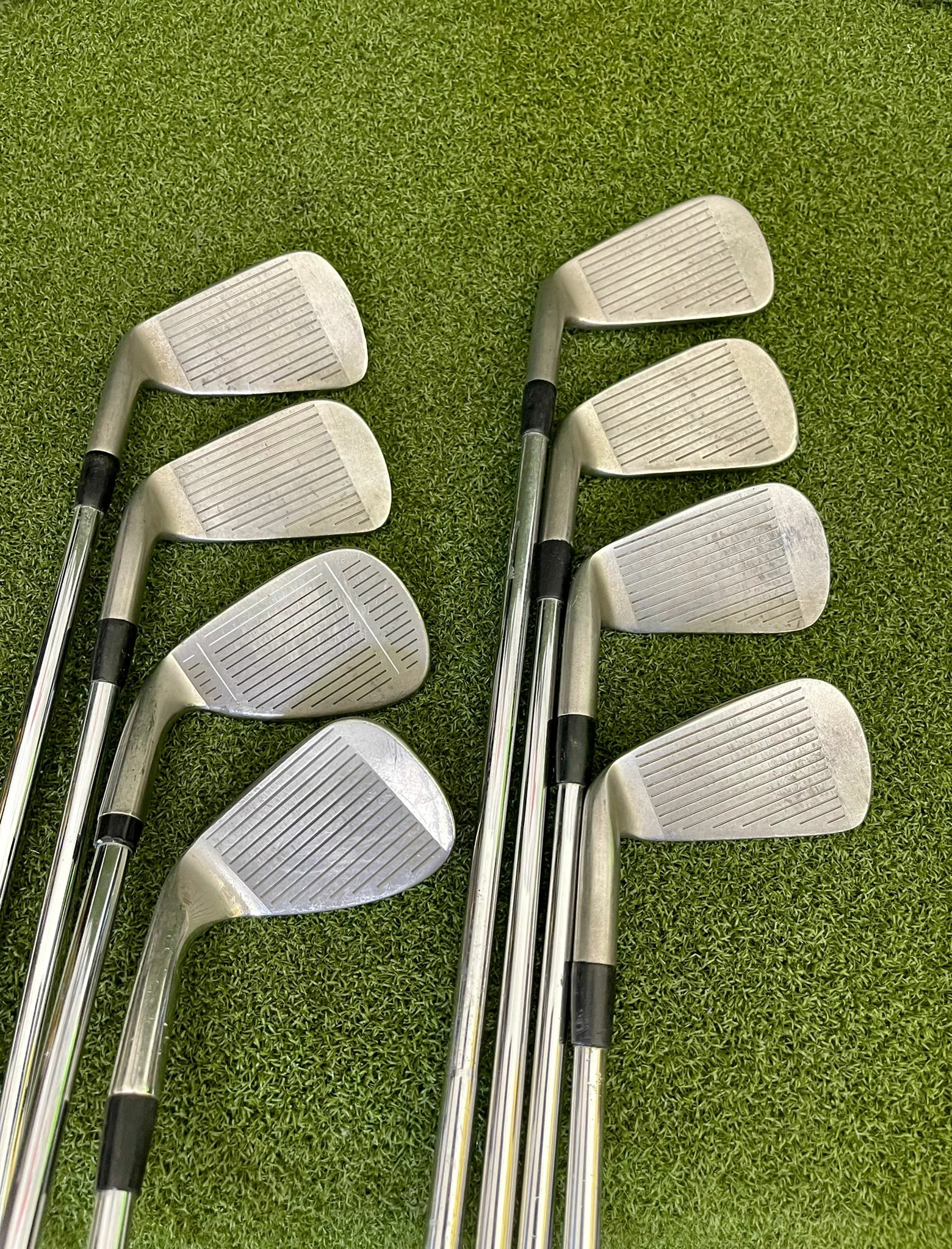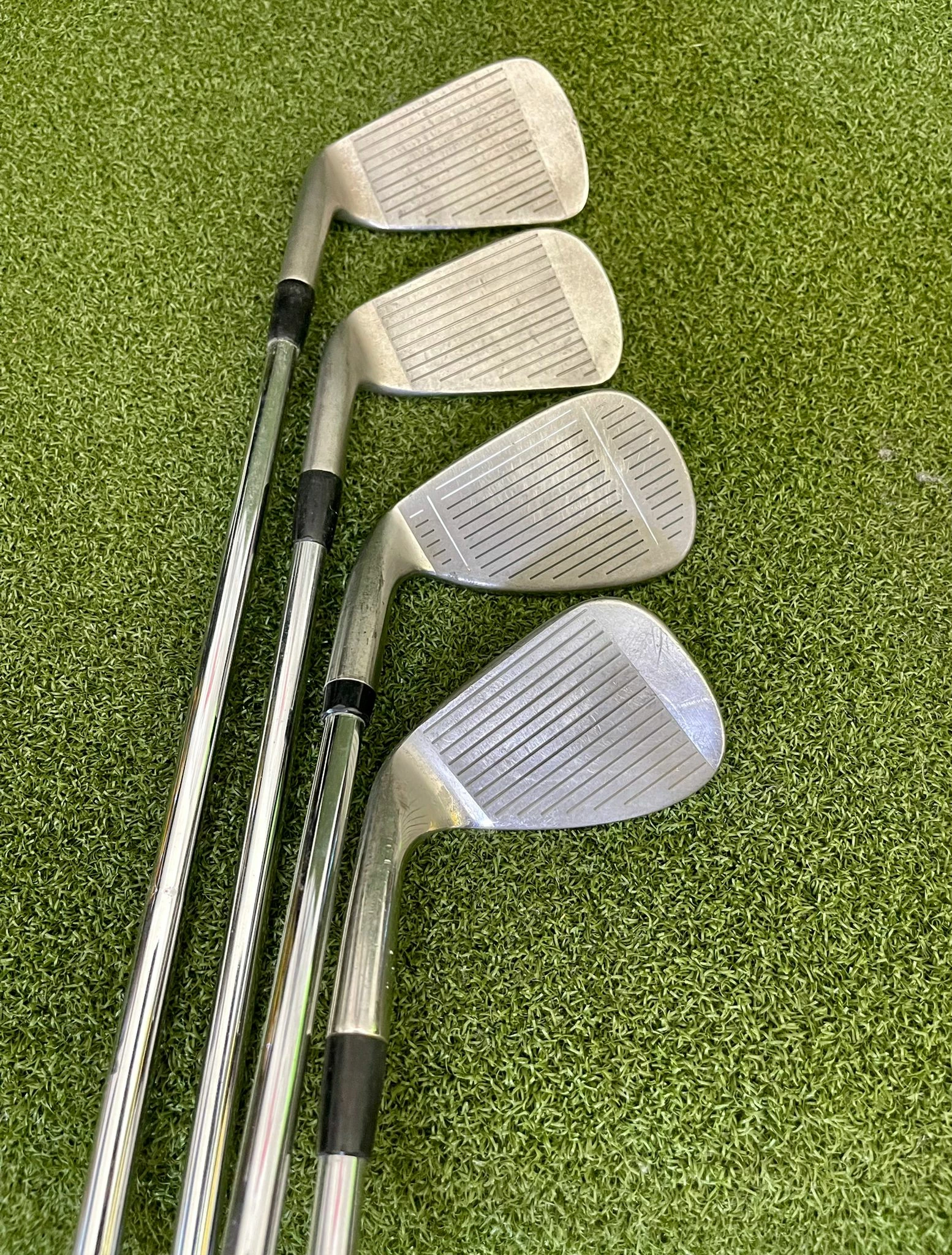 Irons.- Light scratches on the sole, minimal groove wear, and lightly visible ball marks on the face.