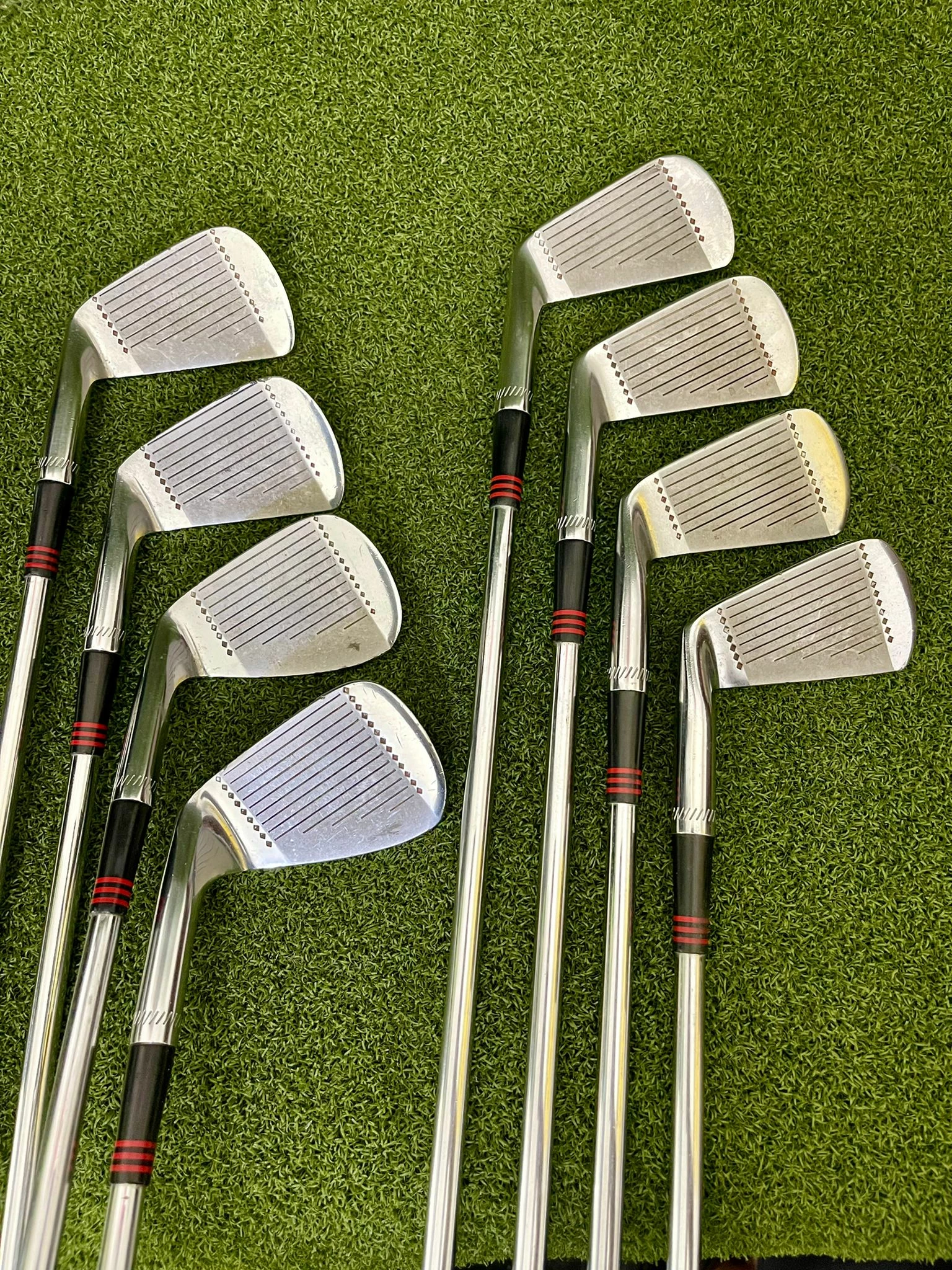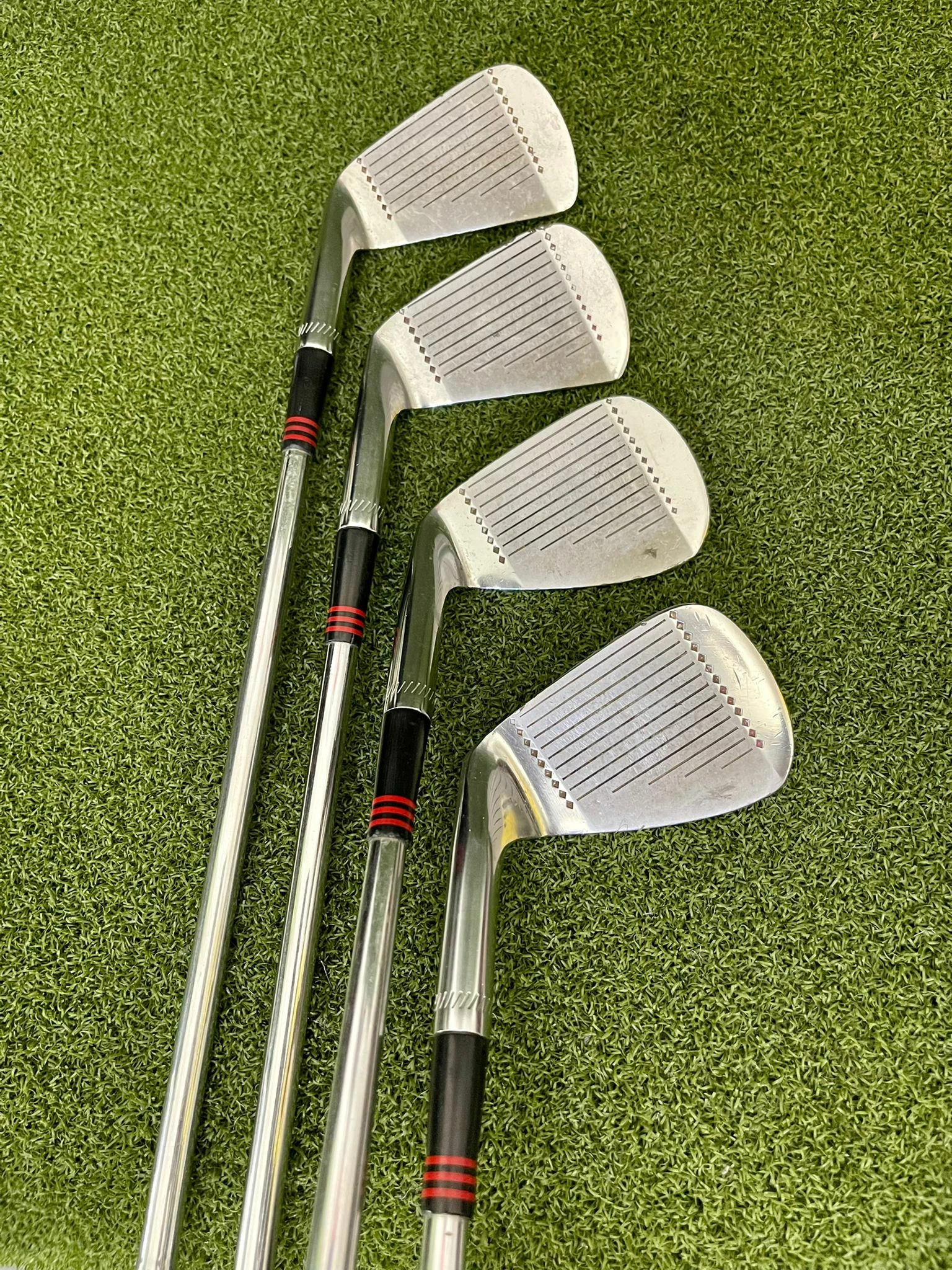 Irons.- Light scratches on the sole, minimal groove wear, and lightly visible ball marks on the face.
